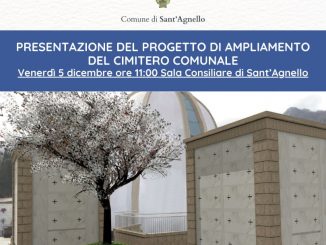 Venerdì 5 dicembre alle ore 11:00 presso la Sala Consiliare del Comune di Sant’Agnello verrà presentato il progetto di ampliamento del cimitero comunale. Il Sindaco Antonino Coppola, l’Assessore ai Servizi Cimiteriali Corrado Fattorusso, insieme agli Uffici comunali [...]