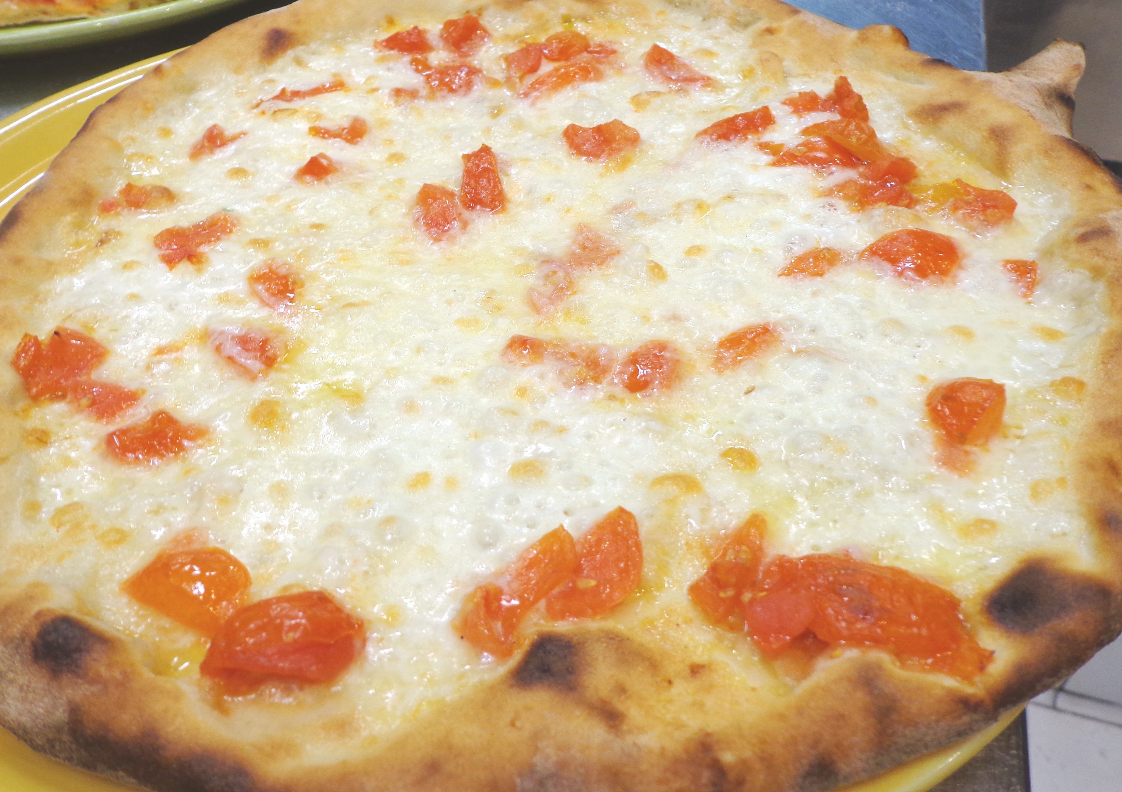 E’ così che con il cambio sede, ma sempre sul Corso Filangieri di Vico, che inizia l’attività di vera pizzeria con tanto di tavoli e personale di sala. Anche se la produzione del pane, focacce, pani insaporiti ai salumi o alle olive, freselle, biscotti, pastiere e casatielli pasquali è sempre continuata in simbiosi con le decine di gusti delle pizze esposte nelle stesse vetrine. Vetrine che storicamente fanno da contr’altare ad un soffitto pieno zeppo di prosciutti crudi di gran qualità che vengono consumati nei taglieri di salumi e formaggi proposti nel menù o sulle pizze.