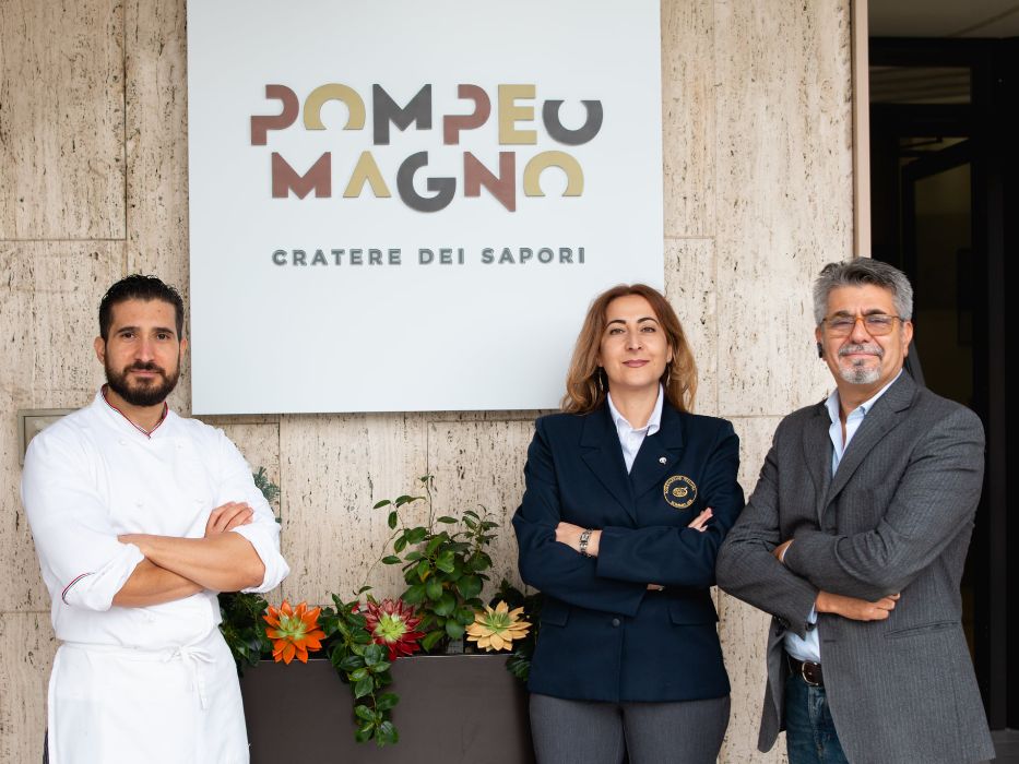 Pompei, gestoto da Gerardo Esposito e Michela Del Sorbo( nella foto con lo chef) i piatti sono condizionati dall’arrivo delle tante bontà di stagione. Fughi, porcini innanzitutto, zucca, castagne, verdure, noci di Sorrento e ortaggi autunnali incontrano il mediterraneo nei tanti piatti che lo chef propone in questo periodo. Dagli stuzzichini di benvenuto ai dolci, tutto prende forma ricordando i colori ed il profumo dell’autunno.