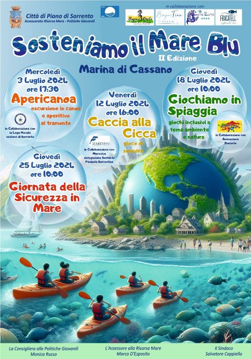 A Piano di Sorrento prendono il via agli appuntamenti della seconda edizione di “Sosteniamo il Mare Blu”, un progetto nato dalla sinergia tra l’assessorato alla Risorsa Mare, l’Ufficio competente, le Politiche Giovanili ed i lidi della Marina di Cassano.