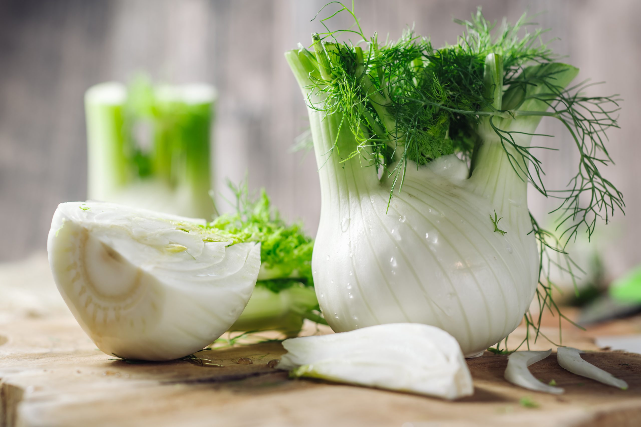 Genuine and fresh raw fennel on a rustic background
