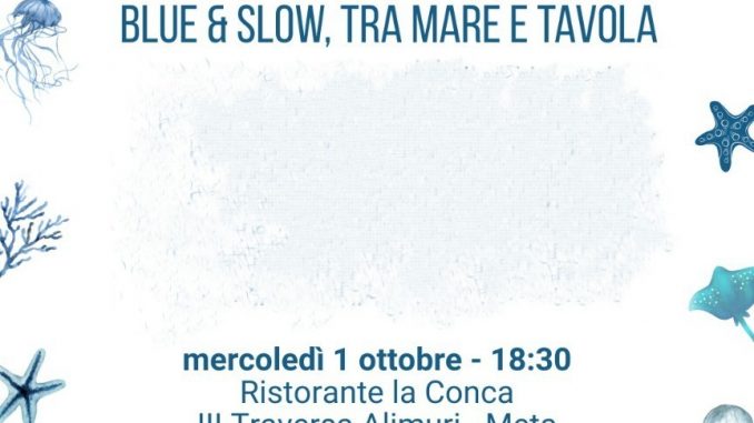 Mercoledì 1 Ottobre alle ore 18,30 a Meta presso il Ristorante La Conca ospiti di Antonio Cafiero, la Condotta penisola Sorentina, Capri e Castellammare dello Slow Food ha organizzato in sinergia con l’Associazione Marevivo Sorrento – Penisola Sorrentina un Aperitivo Divulgativo nell’ambito del programma della Blue Week 2025 realizzato da MareVivo che la vedrà protagonista con iniziative programmate in ogni comune della penisola sorrentina a partire dal 29 settembre e fino a domenica 5 ottobre. Mercoledì 1 Ottobre le due associazioni presenteranno un nuovo format di aperitivo divulgativo “Blue & Slow, tra Mare e Tavola ” in un momento di convivialità fatto per incontrarsi, riflettere su mare, cibo e sostenibilità e per dare vita insieme ad una Comunità attenta al futuro del territorio . Al breve dibattito/confronto , seguirà l’aperitivo rigorosamente Slow pensato per l’occasione dai cuochi del ristorante La Conca. Per partecipare all’interessante iniziativa è necessaria la prenotazione collegandosi al link sotto riportato.