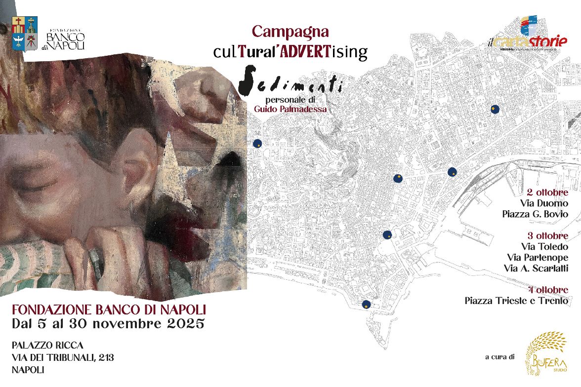 La Fondazione Banco Napoli realizza sei graffiti a pavimento in altrettante zone di Napoli, dal centro antico al Vomero. Parte il 2 ottobre la campagna “floor art advertising” ideata dall’architetto Noemi Verdoliva, per annunciare la mostra “Sedimenti. Ciò che resta non è mai immobile” del pittore e muralista argentino Guido Palmadessa, che inaugura il 5 novembre a Palazzo Ricca sede della Fondazione. «Il progetto “CulTural ADVERTising” – spiega Verdoliva – è realizzato da Bufera srl ed è nato con l’obiettivo di divulgare eventi culturali e sociali, attirando l’attenzione attraverso la presenza inaspettata di graffiti a pavimento e performance artistiche in live painting, che rappresentano un’esperienza visiva affascinante e coinvolgente per i fruitori. Stavolta a sostenere la nostra attività è la Fondazione Banco Napoli». Il programma: giovedì 2 ottobre è possibile assistere alla performance di live painting in via Duomo dalle 10:30 alle 13 (angolo via San Biagio dei Librai) e Piazza Bovio dalle 16 alle 18:30; venerdì 3 ottobre in Via Toledo, all’uscita della metropolitana, dalle 10 alle 13, in Via Partenope nei pressi dell’Hotel Royal Continental dalle 14 alle 16:30, in via Scarlatti all’incrocio con via Luca Giordano dalle 17 alle 19. La campagna di graffiti si chiude sabato 4 ottobre con una live performance in Piazza Trieste e Trento, nei pressi del Gambrinus dalle 10:30 alle 12:30.