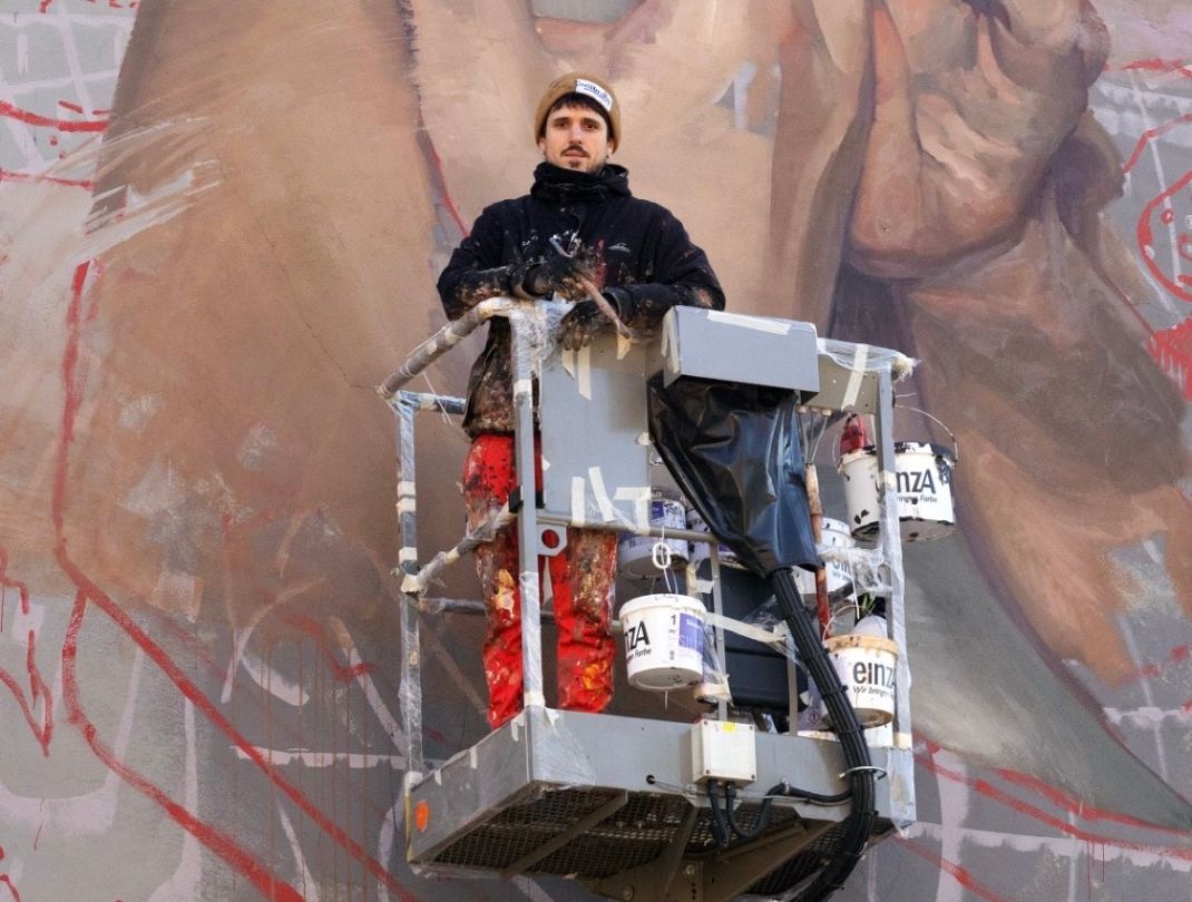 Palmadessa esegue le sei opere, ognuna diversa dall’altra, per le quali sono utilizzate pitture biologiche, prodotte con una miscela a base di latte di bufala e composti biodegradabili a base di olio, resina di pino, amido di mais, cariche minerali e miscele di erbe profumate disperse in aceto bianco distillato, limone, tuorlo d’uovo e cera d’api. A dare il benvenuto in città all’artista anche la street artist napoletana Trisha Palma.