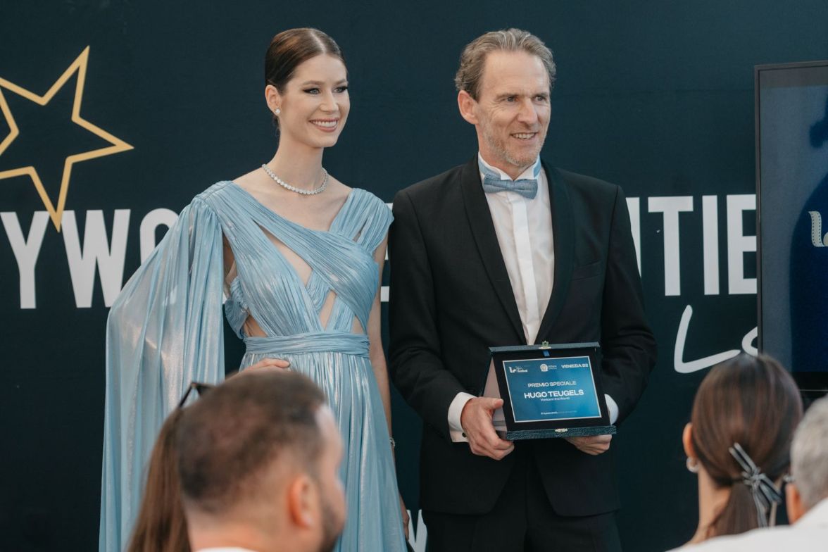Venezia 82 evento Alfiere_5 (Il regista Hugo Teugels e l’attrice e modella Polli Cannabis) Venezia 82, Il regista Hugo Teugels e l’attrice e modella Polli Cannabis
