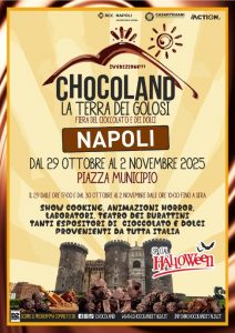Un’edizione speciale di Chocoland dedicata ad Halloween, quella in programma dal 29 ottobre al 2 novembre, a Napoli, in piazza Municipio. Protagoniste saranno le creazioni di maestri cioccolatieri e pasticcieri provenienti da ogni regione d’Italia e non solo. Oltre a specialità come il “torrone dei morti” di tradizione napoletana e il croccante siciliano, sarà infatti possibile gustare, nei numerosi stand allestiti nel cuore della città, il kurtos ungherese o varie tipologie di crepes. E, ancora, show cooking, spettacoli, laboratori ed intrattenimento per i più piccoli.