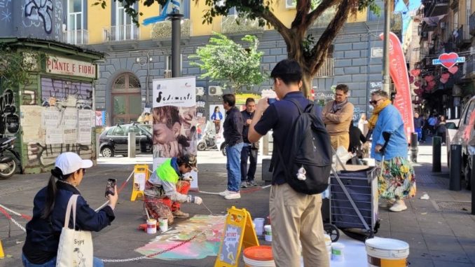Guido Palmadessa Street artist argentino, tra i più famosi al mondo, si è messo all’opera per realizzare graffiti a pavimento in giro per le strade di Napoli.