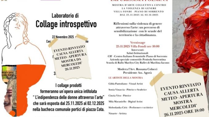 Mostra d’arte collettiva “Impurissima Foemina” – Villa Fondi: il vernissage e l’apertura ufficiale della mostra sono rinviati a mercoledì 26 novembre 2025 alle ore 18:00.