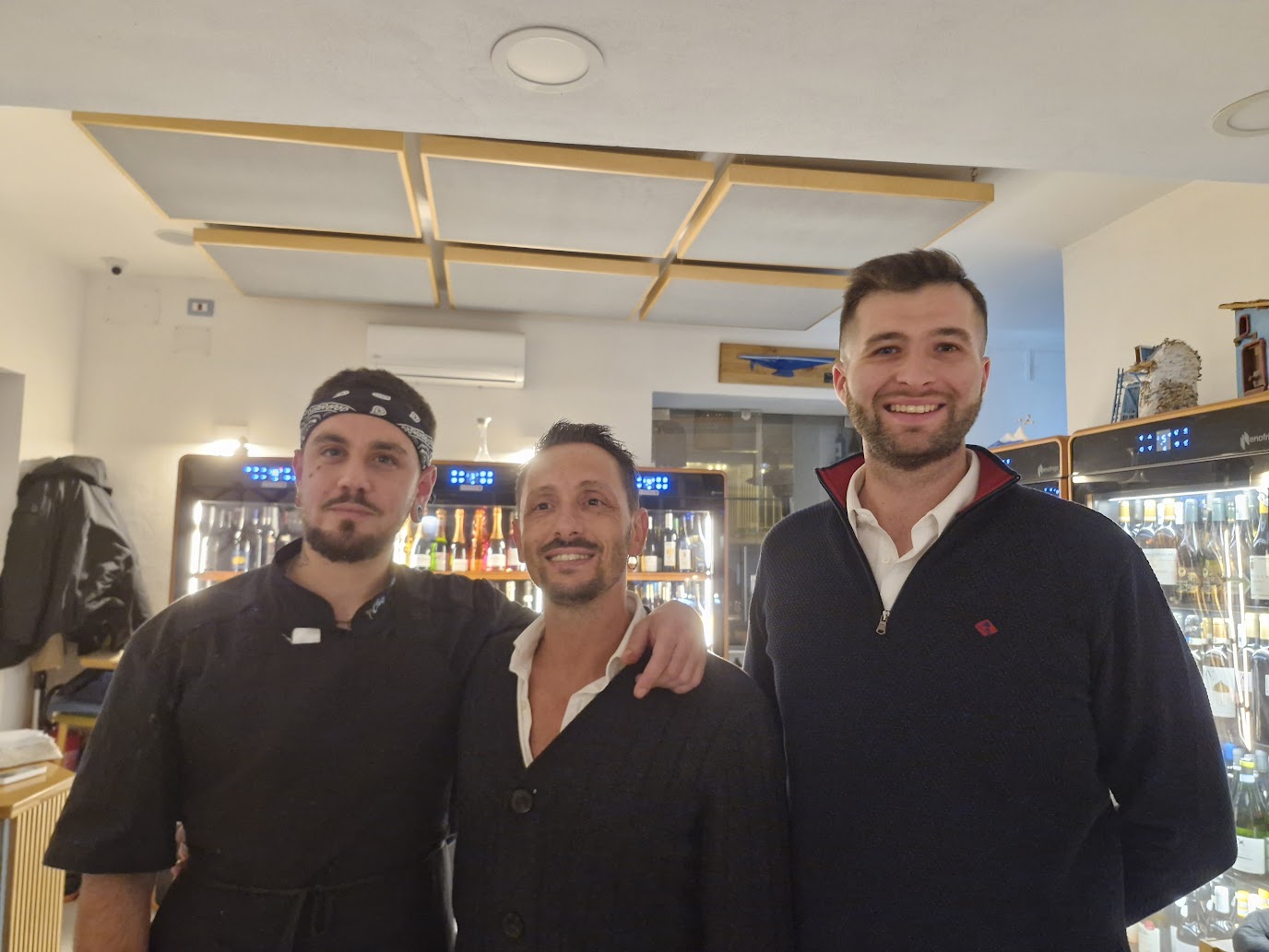 Lo chef Alessandro Costigliola Inizia la sua carriera imprenditoriale nel settore della ristorazione nel 2013 con la gestione del Tuna restaurant sul porticciolo di Bacoli dove sin dall’inizio sceglie la linea del “km buono”. Da quel lontano 2013 insieme ai suoi collaboratori che tuttora lo affiancano acquisisce esperienza manageriale ma anche competenza sui vini attraverso corsi specializzati. Nel 2021 si lancia nell’avventura di Aguglia – Osteria di Mare sulla spiaggia di Marina Grande a Bacoli. Locale più ampio e bello ma con la stessa filosofia del Tuna: pesce di giornata e di prima scelta nonché prodotti che seguono la stagionalità con cui nascono i piatti del “non menu”, scelta obbligata proprio per garantire la qualità. Dai suoi tavoli all`aperto si può respirare l`aria di mare. Gli spazi interni, molto curati nei dettagli, sono arredati con un gusto contemporaneo. In cucina c’è Francesco Fevola, già bravo nonostante la giovane età. Mario Augurio, invece, coccola gli ospiti in sala insieme ad Alessandro. Aguglia viene premiata nel 2022 come “trattoria dell’anno” dalla guida Mangia & Bevi de Il Mattino e fa il suo ingresso nella guida Ristoranti d’Italia 2026 del Gambero Rosso. Una selezione di vini cresciuta nel tempo, sempre più ampia e attenta, porta Costigliola ad aprire nel 2024 l’enoteca Aguglia Brilla che nasce inizialmente come cantina del ristorante ma la continua richiesta di acquisto di bottiglie da parte dei clienti e il progressivo incremento del numero di referenze selezionate spinge a un certo punto Alessandro a considerare l’ipotesi di metterle a disposizione del pubblico. Circa 700 le etichette di tutto il mondo disponibili in cui tra le italiane a farla da padrona è ovviamente la Campania, mentre ampliando gli orizzonti all’Europa la star indiscussa è la Francia, grande passione di Alessandro. Nonostante la proposta del ristorante sia incentrata interamente sul pescato, nella selezione di Aguglia Brilla non mancano etichette di rossi, ovviamente poco tannici. Tra le bollicine tanto metodo classico italiano delle zone notoriamente vocate ma anche chicche campane e siciliane. Anche gli champagne sono ben rappresentati con circa 80 etichette, molte delle quali provenienti da piccole maison.