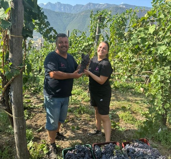 Apertura Lettere Mariano Sabatino Nella foto Mariano Sabatino e la figlia Erika durante la vendemmia scorsa nei vigneti di proprietà.