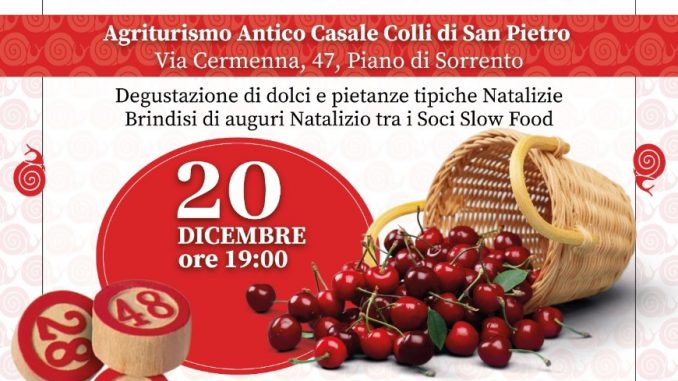 Sabato 20 dicembre, a partire dalle ore 19:00, ci ritroviamo all’Agriturismo Antico Casale, sui Colli di San Pietro – Piano di Sorrento, per vivere insieme un momento autentico di festa e condivisione. Una Tombolata Slow pensata per stare insieme, brindare al Natale e sostenere la comunità, tra sapori della tradizione e sorrisi. Durante la serata: degustazione di dolci e pietanze tipiche natalizie, brindisi di auguri tra i soci Slow Food, premi a base di prodotti del territorio, raccolta fondi a sostegno del progetto SoukAiku, promosso da Ndemba Dieng, portavoce della Comunità Slow Food AfricaNA per l’integrazione dei migranti e lo sviluppo dei paesi d’origine.