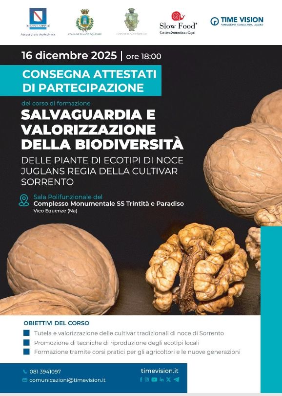 Locandina consegna attestati primo corso a salvaguardia della Noce della Penisola sorrentina