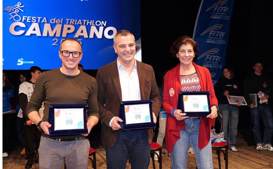 L’evento ha dato la giusta importanza al lavoro svolto ed ai relativi risultati ottenuti dai ragazzi. La partecipazione agli eventi regionali è la chiave vincente per la diffusione». È intervenuto anche l’assessore all’Ambiente Catello Raimo il quale ha ribadito l’impegno della città di Pompei nel sostenere la disciplina che rappresenta un elemento di crescita e valorizzazione del territorio. Durante la manifestazione si è fatto un bilancio delle attività e dei risultati del 2025 che è stato un anno molto proficuo. Atleti provenienti da tutta la Campania e da altre regioni hanno partecipato al Campionato regionale articolato su tre tappe: Baia Domizia, Acciaroli e Napoli. Successo anche per il nuovo Circuito Aquathlon Giovanile “Le 5 Province”, che ha coinvolto circa ottanta giovani triatleti, contribuendo in modo decisivo alla diffusione del triathlon sul territorio e all’aumento dei tesserati.
