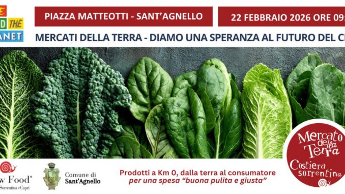 Domenica 22 febbraio 2026 torna l’appuntamento con il Mercato della Terra targato Slow Food e patrocinato dal Comune di Sant’Agnello. Dalle 9:00 alle 13:00 a Piazza Matteotti aziende provenienti dalla Penisola Sorrentina e da tutta la Campania, selezionate secondo i criteri della “decrescita felice”, proporranno i loro prodotti di stagione. Il Mercato della Terra a Sant’Agnello ha cadenza mensile, ogni quarta domenica del mese, e ha l’obiettivo di incentivare la spesa consapevole e l’alimentazione genuina. La Condotta locale Slow Food comprende i territori da Massa Lubrense fino a Castellammare di Stabia e l’isola di Capri. Secondo i principi del movimento, si impegna a salvaguardare e promuovere la biodiversità locale e a diffondere l’educazione al cibo “buono, pulito e giusto”. Per conoscere i prodotti e i produttori che saranno presenti al Mercato della Terra e per restare aggiornati sulle attività della Condotta Slow Food Costiera Sorrentina e Capri è possibile consultare il canale whatsapp al seguente link: https://whatsapp.com/channel/0029Vay20eaJJhza2O4PGe0r