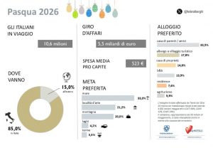 La Pasqua 2026 si avvicina con segnali incoraggianti per il turismo italiano e, in particolare, per la Penisola sorrentina, pronta ad accogliere visitatori nel segno della qualità e della tradizione. I dati diffusi dall’Federalberghi, sulla base di un’indagine realizzata da Tecnè, parlano di 10,6 milioni di italiani in viaggio, con l’85% che resterà nel Belpaese, generando un giro d’affari complessivo di 5,5 miliardi di euro. Numeri che confermano una sostanziale tenuta del comparto, con una preferenza marcata per le destinazioni di prossimità. Il mare si conferma la meta più ambita (33%), seguito dalle città d’arte (21,2%) e dalla montagna (20%). In questo scenario, la Penisola sorrentina si colloca tra le destinazioni più attrattive, grazie alla combinazione di paesaggio, cultura e offerta enogastronomica.