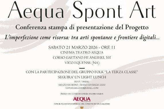 Sabato 21 marzo presentazione ufficiale del progetto “Aequa Spont Art – L’imperfezione come risorsa: tra arti spontanee e frontiere digitali”, la cui progettazione e coordinamento sono a cura dell’Associazione Opera aps. L’incontro si terrà alle ore 11:00 presso il Cinema Teatro Aequa di Vico Equense.
